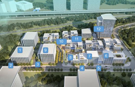 6-11#为独栋研发楼:单栋面积1695-4494平米  (地上4层)